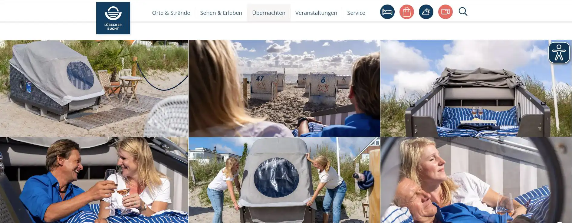 Infos zu Preisen und Verfügbarkeit: www.travemuende-tourismus.de/erleben/am-im-wasser/schlafstrandkorb
