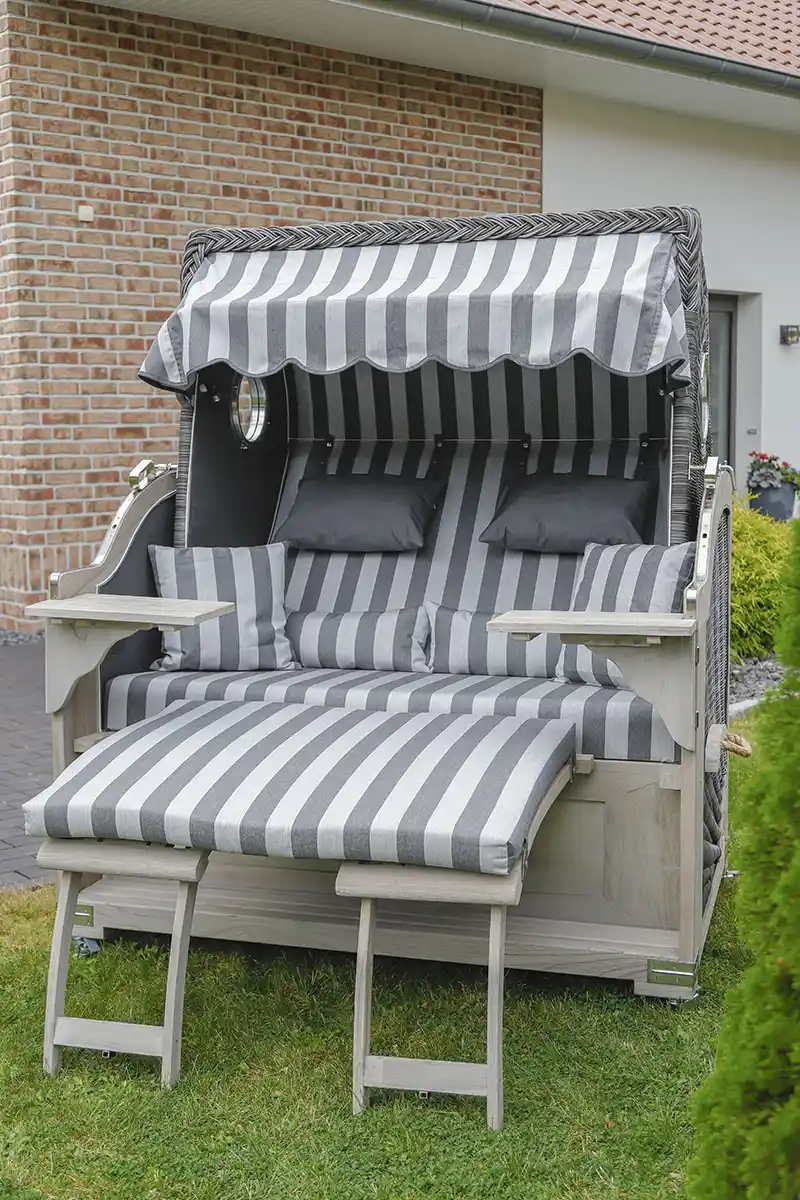Der Strandkorb Kampen ist das Symbol für Erholung und Stil in Ihrem Garten und bietet dabei Schutz vor Wind und Sonne, während man die atemberaubende Gartenkulisse genießt. Ob bei einem romantischen Sonnenuntergang oder einem entspannten Tag im Garten – der Strandkorb Kampen verspricht unvergessliche Momente der Entspannung und des Wohlbefindens.